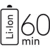 Üzemidő 60 perc | Teljes feltöltés 60 perc | Gyorstöltés 5 perc |